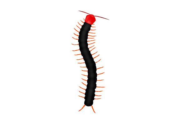日本国内でよくみられるムカデの体長は7〜13cm程度。細長い体型と、たくさんの肢(あし)が特徴です。ムカデは漢字で「百足」と書かれるほど肢(あし)の数が多い虫。1つの体節に1対の肢があり、種類によってその本数はさまざまです。