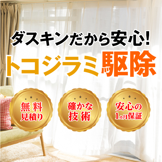 そこで、ムカデの駆除・予防はプロにお任せしましょう。ダスキンの害虫獣駆除サービスでは、ムカデなどの不快な害虫を人と環境に安心な薬剤でしっかり駆除。侵入を防ぐだけでなく、繁殖も防ぎます。